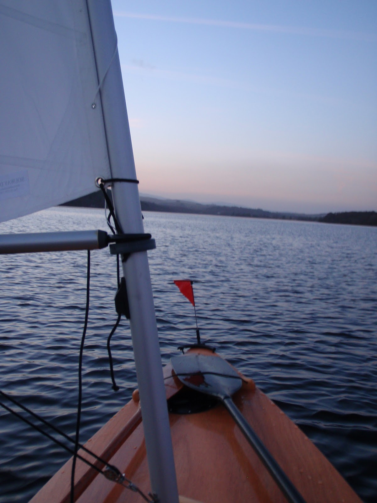 He landed and we had a catch up while I quickly ate my lunch, donned my drysuit and wheeled Aylen down to the slipway. It was a bit late to be getting out for a sail but it was such a lovely afternoon we reckoned it was worth going for a potter for an hour or so before the sun went down.